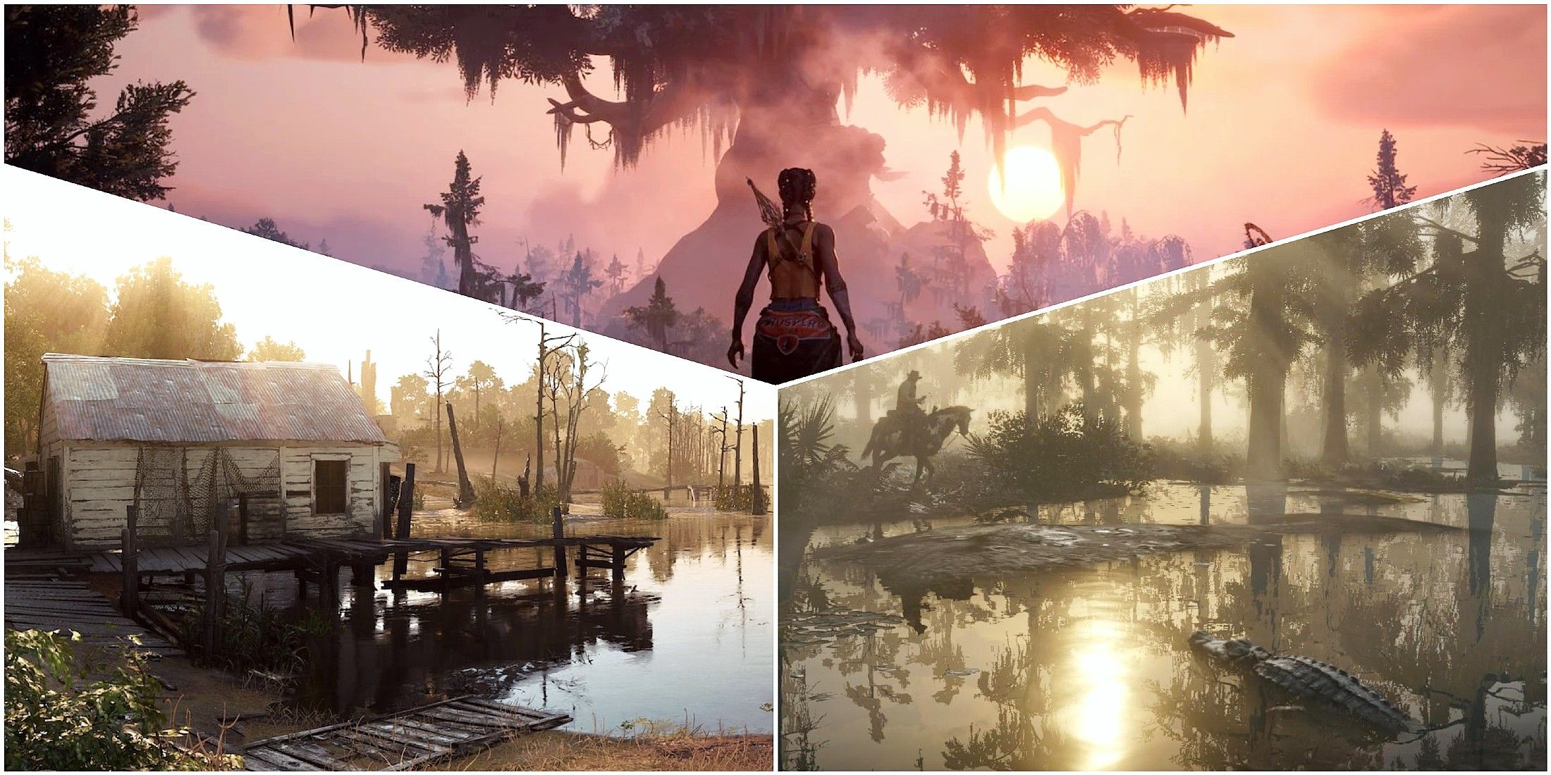 - Red Dead Redemption 2, Mafia 3, and Assassin’s Creed Liberation offer open-world exploration of the American Bayou.