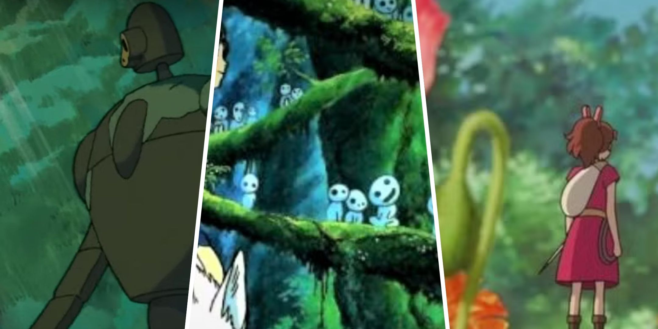 San, who is also known as Wolf Princess, is deeply linked to the forest when breed by the wolves. Other remarkable creatures are Kodama that are glowing white creatures born of older trees that are also linked to forest spirits. The forest itself is manifested as a monster to protect the forest from selfish people.