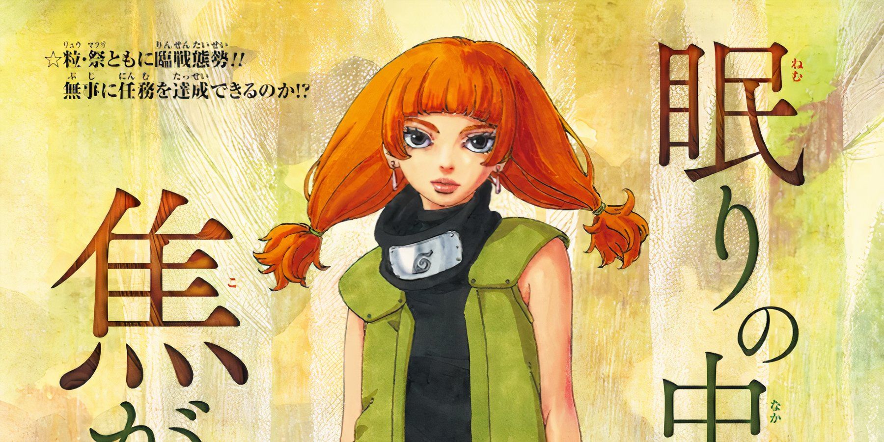 Before the publication in the magazine V Jump, a snout look has been revealed. No content from the Manga chapter itself has been revealed to the fans, but the colored cover page has been officially shown. This cover page has Moegi, a character of great importance right now because of the Shinju arch.