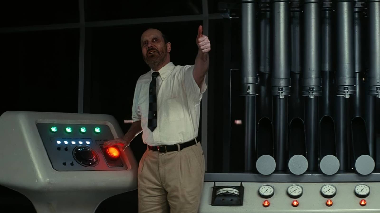 Fallout TV show Hank in power armor standing in front of a gray wall.