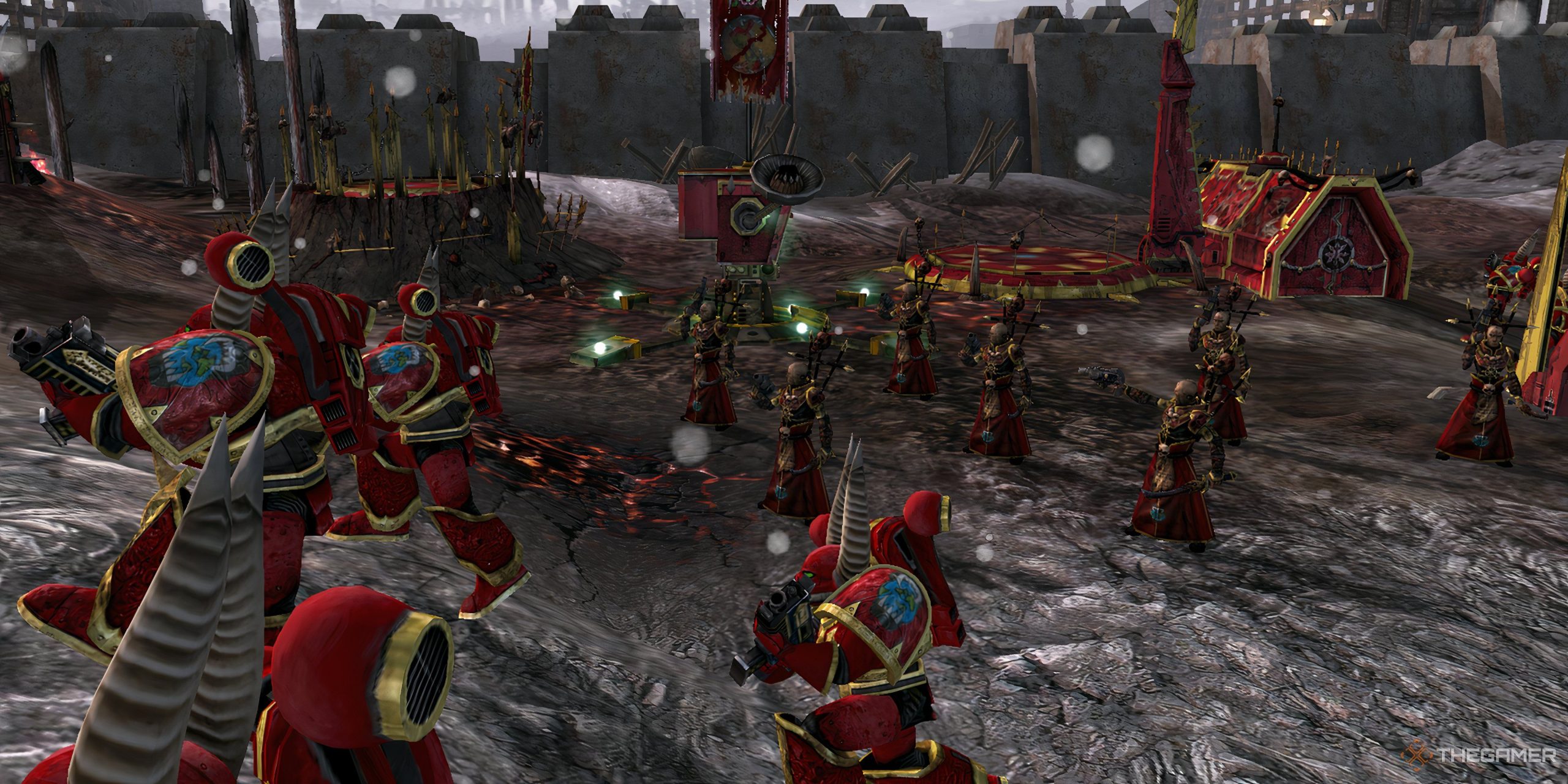 The player's Necron units that defend a position from Space Marines in Warhammer 40K: Dawn of War - Definitive Edition.