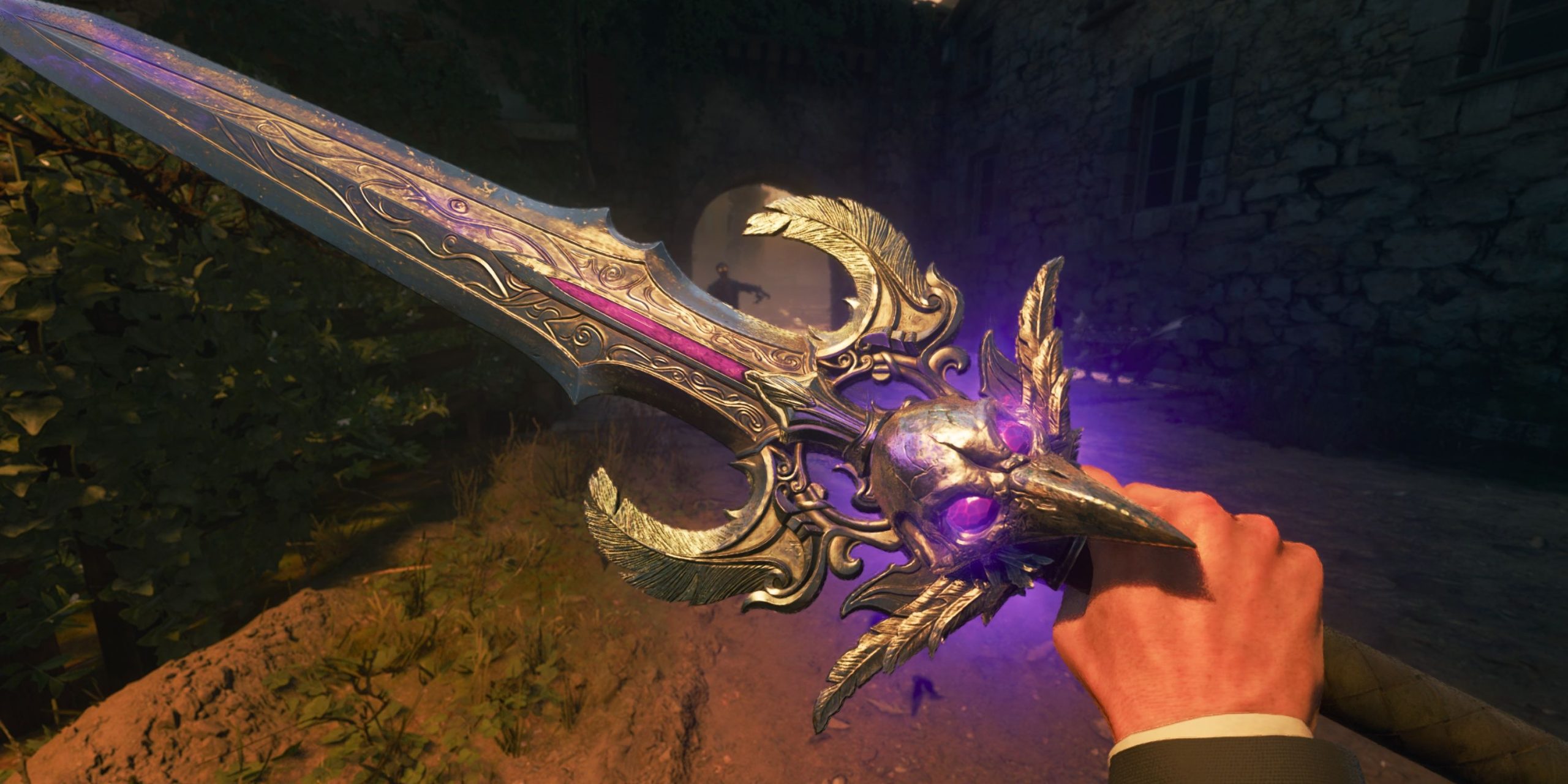 Players can get their hands on the Raven Bastard Sword by acquiring a stamp, entering the Dining Hall with the Vulture Aid, and then interacting with the knight statue on the far left. This knight statue is indicated by the stone raven sitting on its shoulder, as well as the dragon graffiti behind it. When players interact with this statue, it will give players the Raven Bastard Sword which players can equip as their dedicated melee weapon.