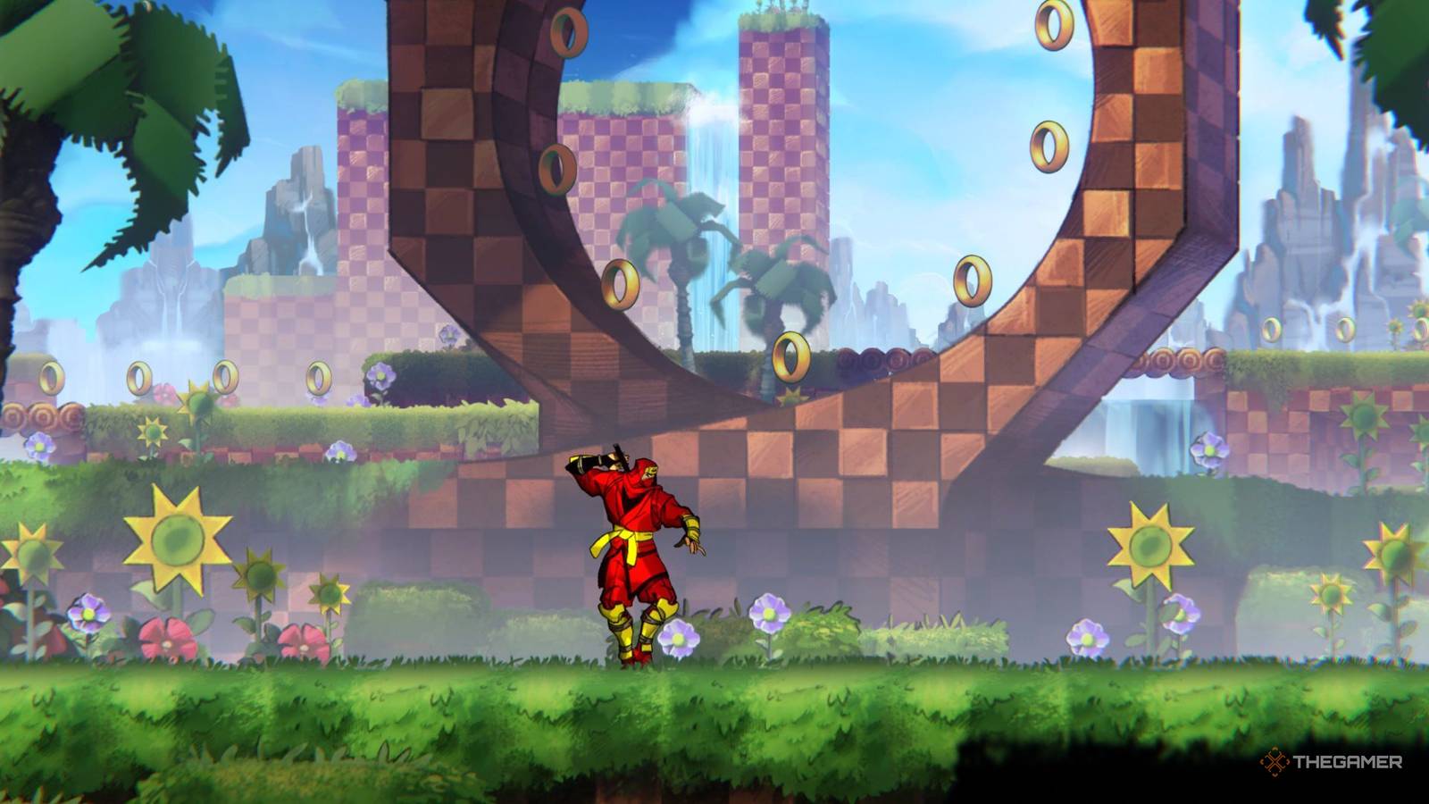 You may have noticed that I haven't talked about the Sonic the Hedgehog scene yet, and that's because, despite being the biggest and most interesting crossover of the bunch, it's the only one that doesn't have a companion. The fight against Eggman serves as the finale to the entire DLC and, as grand as it is, it's the one big slam against Sega Villains that Green Hill Zone (and a surprise second stage) are basically just wonderful window dressing.