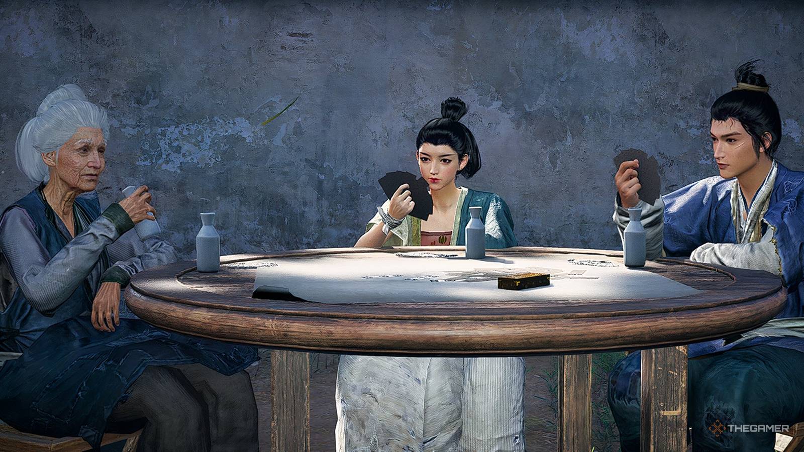 Where the Winds Meet Standing at a playing card table in Kaifeng.