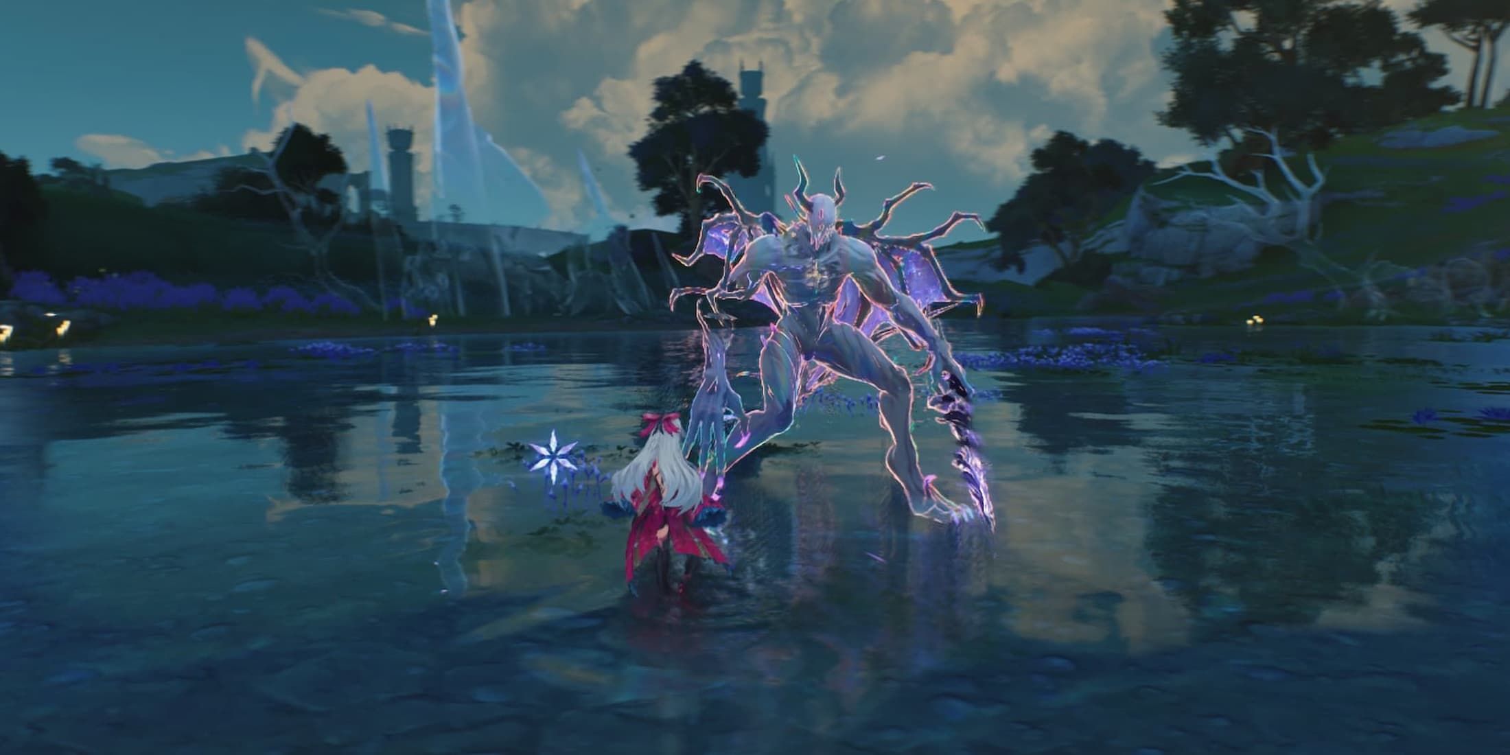 To start the Nightmare Tempest Mephis quest, go to the Resonance Beacon south of the Shores of Last Breath, then go to the ruins to the north. Look for a Lumiscale Construct lying on the ground and interact with it.